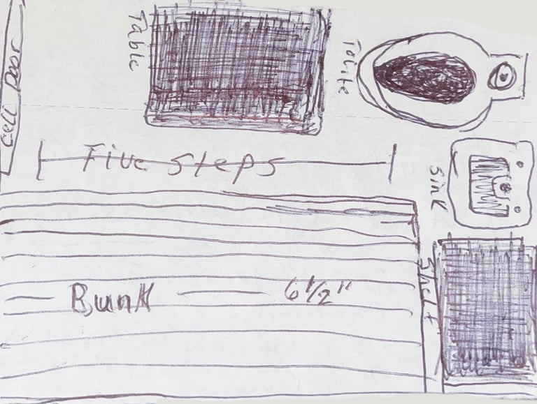 Diagram of Ad Seg cell where Bo has been held for more than a year